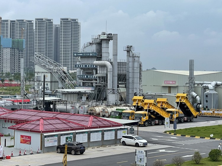 廣東省瀝青供應(yīng)鏈協(xié)會(huì)會(huì)員單位參觀基地內(nèi)的日工拌和設(shè)備